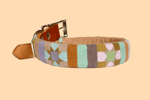 It's important to me to work with materials that are safe for people, pets and the planet. My leather is sourced from Wickett and Craig, an environmentally certified American leather producer. Fabrics are either vintage or sourced from small batch textile manufacturers and made from cotton and eco friendly fibers. If I use a vintage fabric that I don't have the fiber content for it will be noted on the listing.